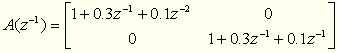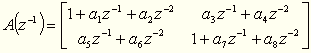 V bloku diskrétneho systému sa matice A a B zadávajú pomocou 8-ich koeficientov zadaných v hranatých zátvorkách ( [ a1 a2 ... a8 ] , [ b1, b2, ... b8 ] ). Matice A a B sú: