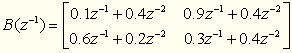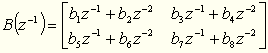 On1 sa zadáva v hranatých zátvorkách a je v tvare: [ a1 a2 a3 a4 b1 b2 b3 b4 ], tieto koeficienty predstavujú prvý riadok matíc A, B uvedených vyššie.